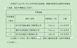 成雅工業(yè)園區(qū)百丈安置房二期項目鋼筋采購,根據(jù)有關(guān)法律、法規(guī)、規(guī)章的規(guī)定,于2023年4月21日經(jīng)雅安市名山區(qū)益業(yè)商貿(mào)有限公司競爭性談判比選流程,評審工作已經(jīng)結(jié)束,成交人已經(jīng)確定,現(xiàn)將成交結(jié)果公示如下:成交單位名稱:四川霞成商貿(mào)有限公司成交價:加成價30元/噸進場時間:待甲方通知成交質(zhì)量要求:合格自成交結(jié)果公示之日起一個工作日內(nèi),對成交結(jié)果無異議的,采購人將簽發(fā)成交通知書,并在五個工作日內(nèi)簽訂合同。雅安市名山區(qū)益業(yè)商貿(mào)有限公司2023年4月23日...